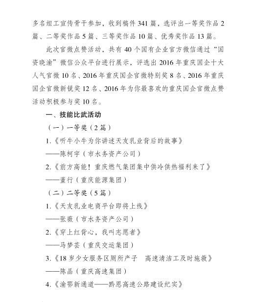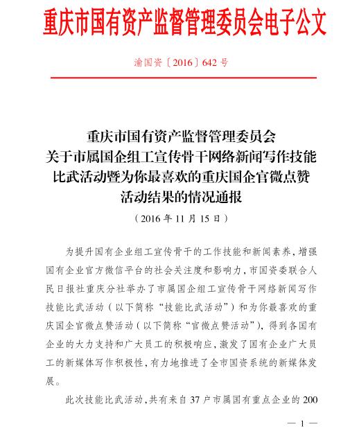 重慶國資網(wǎng)絡(luò )新聞寫(xiě)作比武活動(dòng)獲獎情況通報