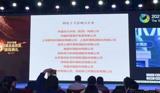 This forum released a number of honor lists in solid waste industry in 2021. Sanfeng Environment, relying on its achievements in reform and development, market development, upstream and downstream layout of the industrial chain, and technology research and development and other fields, has been awarded the highest award of "Top 10 Influential Enterprises in the Solid Waste Industry" in china for the fifth consecutive year.